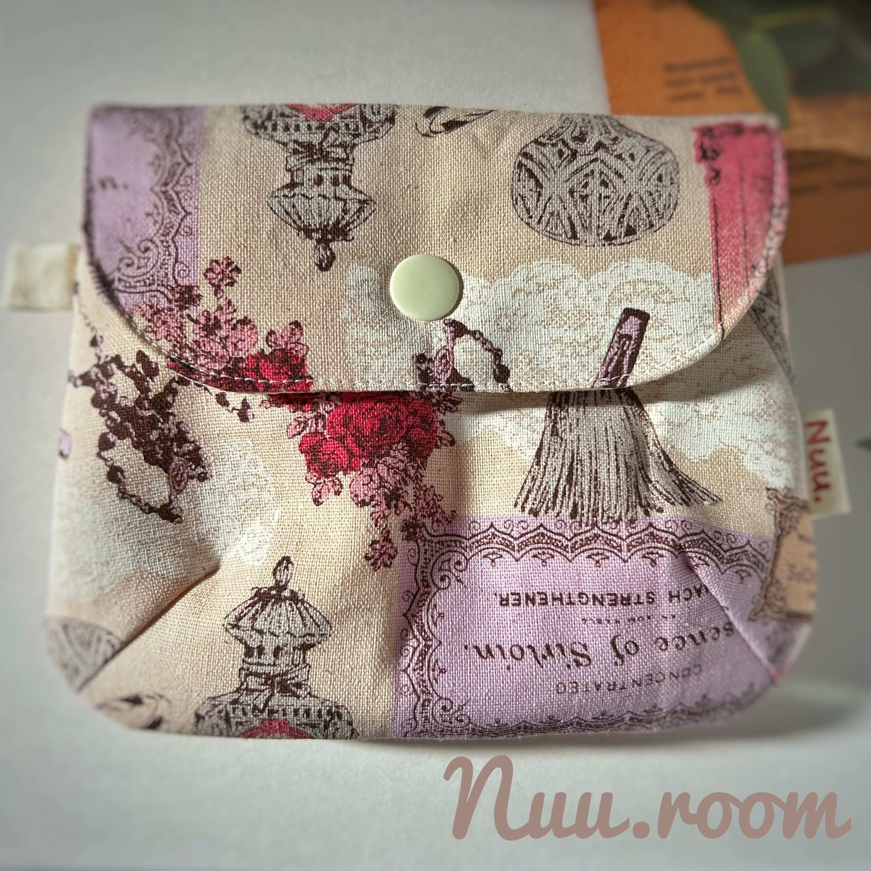 ふんわりポーチ・レトロアンティーク(生成り×ピンク)