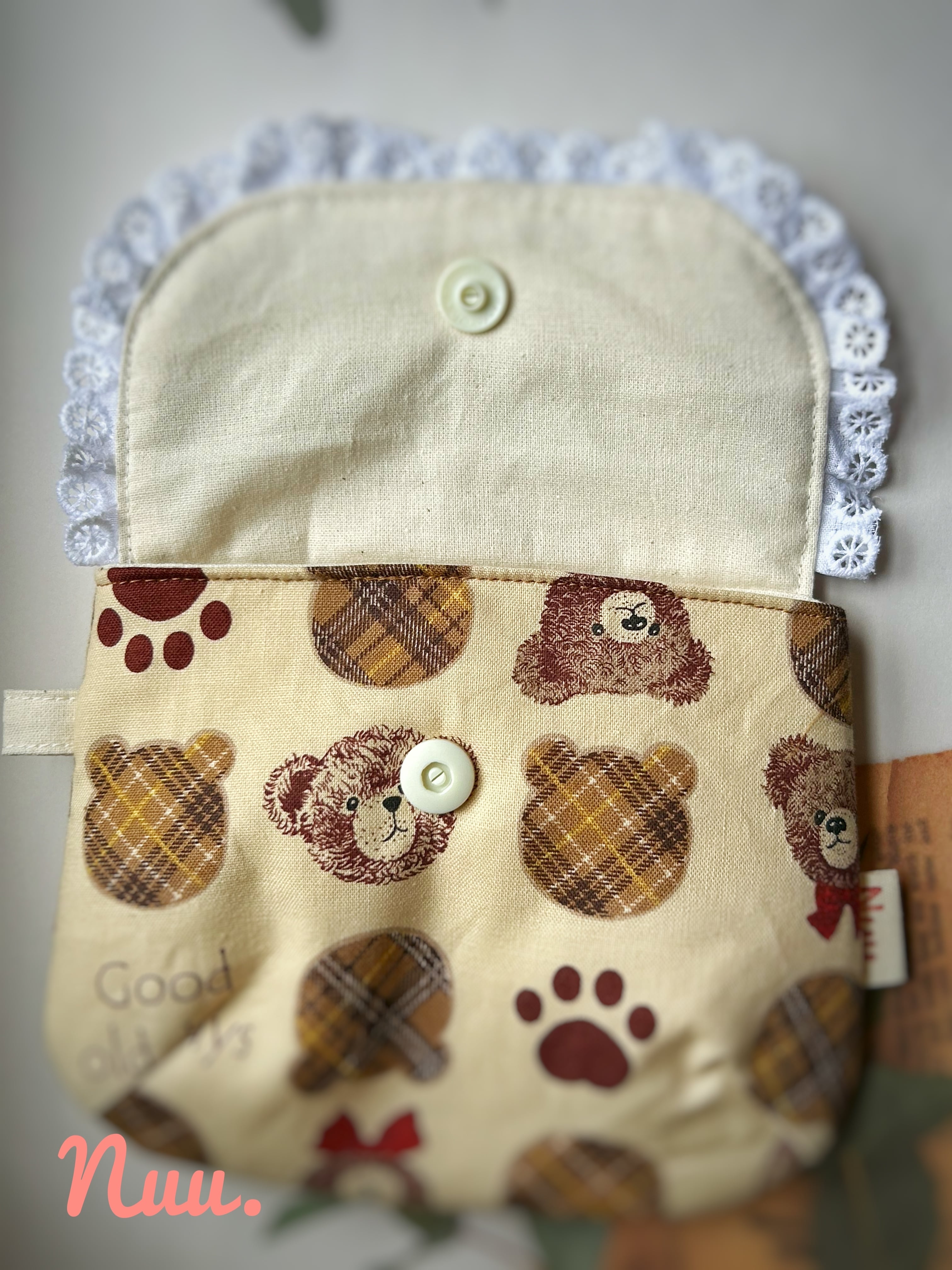 可愛いテディベアと肉球の生地で製作しました。