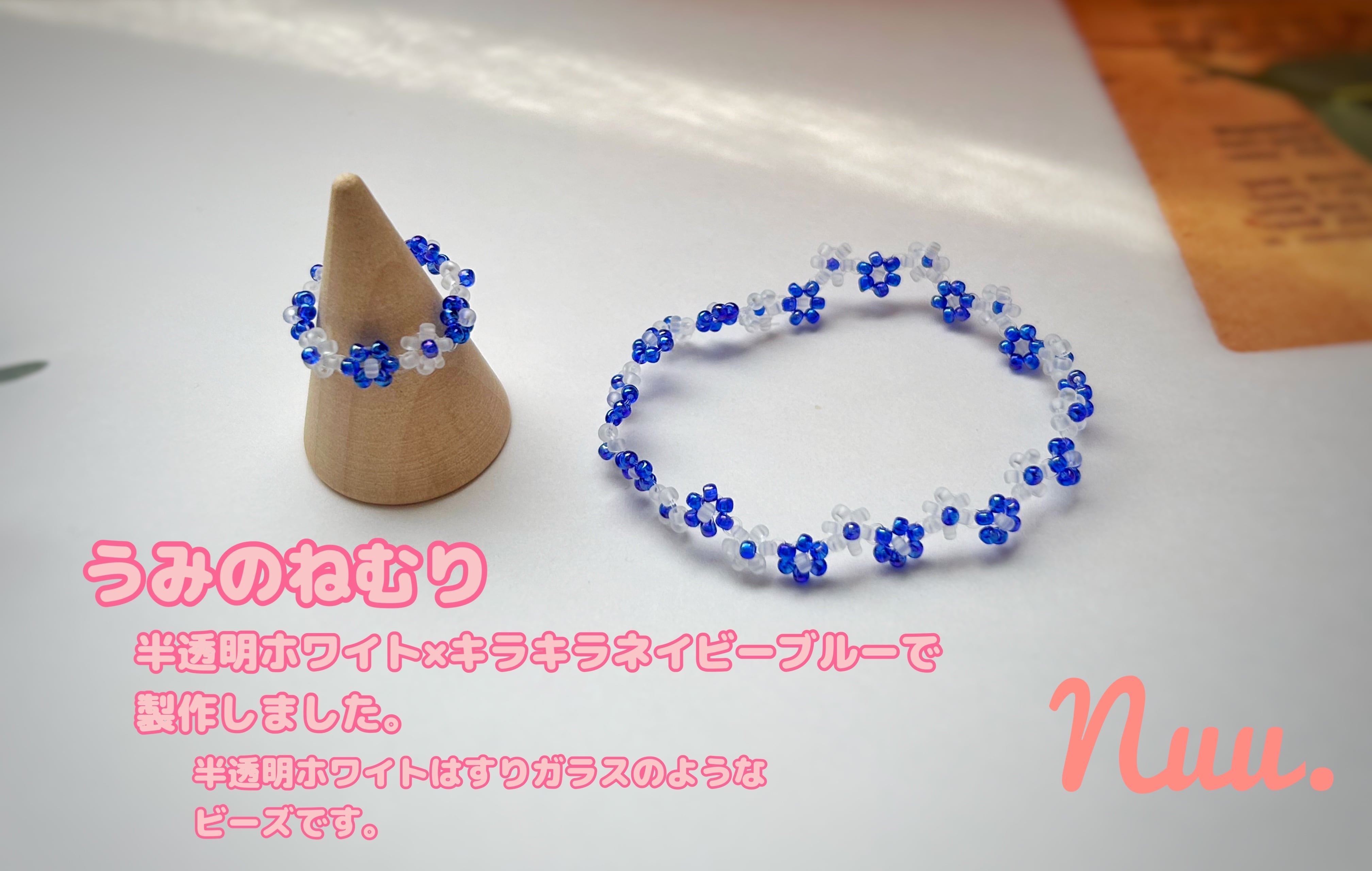 【セット】ヘアネックレスとビーズリング〈うみのかけら〉